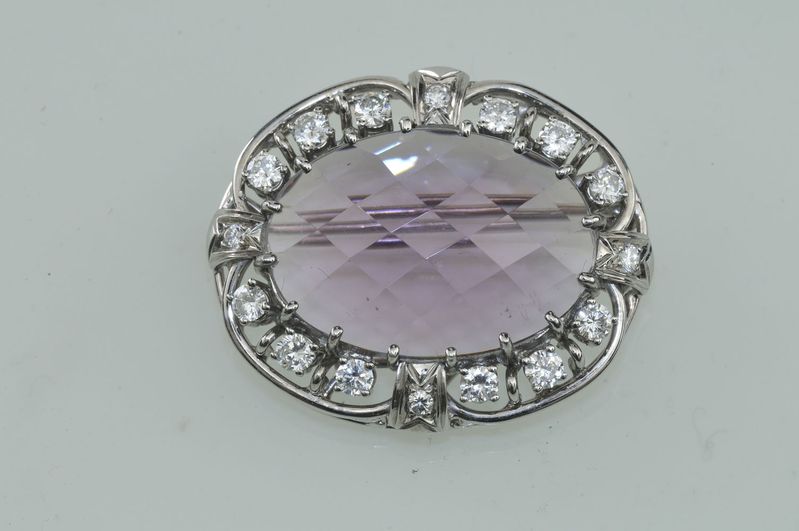 Technika: 14 k biele zlato, váha 11,2 g, diamanty cca 1,0 ct, ametyst cca 10,0 ct