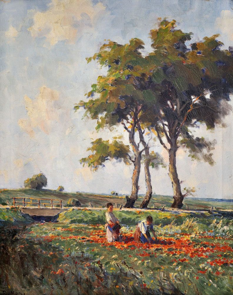 "Zbieranie divých makov" je charakteristickým dielom nedoceneného prešovského maliara Ernesta Rákosiho. Tento maliar sa totiž prejavil ako prívrženec impresívnej maniery už v raných prácach zo začiatku storočia (výstavnú premiéru mal v Prešove v roku 1902) a jej princípom zostal z našich žánristov verný azda najdôslednejšie. Dokazujú to najmä maloformátové ľudovožánrové obrazy a krajinárske skice z poriečia Torysy a okolia Solivaru (Pri kolovrátku -- Priadka, okolo 1904; Pastier, okolo 1908; Mesačná noc, 1911; Topenie snehu, 1913; Krajinka, 1914; Zimné slnce, 1918). Oproti hýrivej epickosti Gyurkovitsa a Moussona sa vyznačujú až epigramatickou námetovou zdržanlivosťou, ale aj skicovitou uvoľnenosťou, nezámernosťou temperamentného rukopisu, vyznačujúceho sa intuitívnym umiestňovaním samostatných, nelokálnych farebných škvŕn a zbežnou predlohu len všeobecne rešpektujúcou kresbou.