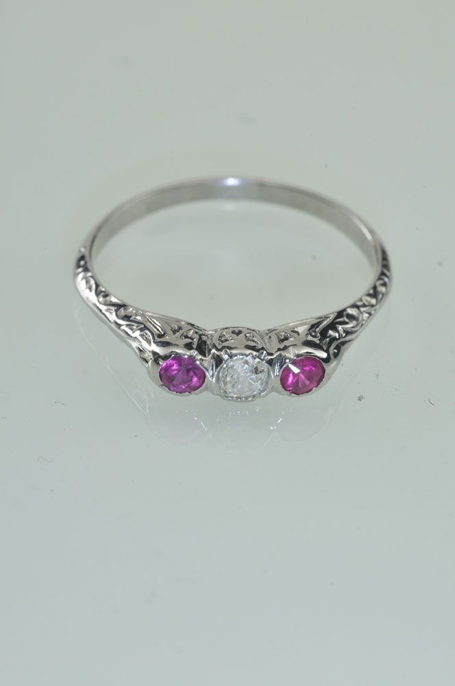 Technika: 14 k biele zlato, váha 2,1 g, diamant cca 1,0 ct starý brús, velkost 56