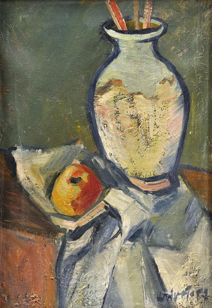 4 200,- € Úvoz na hline. 1986. Olej, kombinácia techník na preglejke. 40 x 60 cm. (92. letná aukcia, 8. 6. 2010)