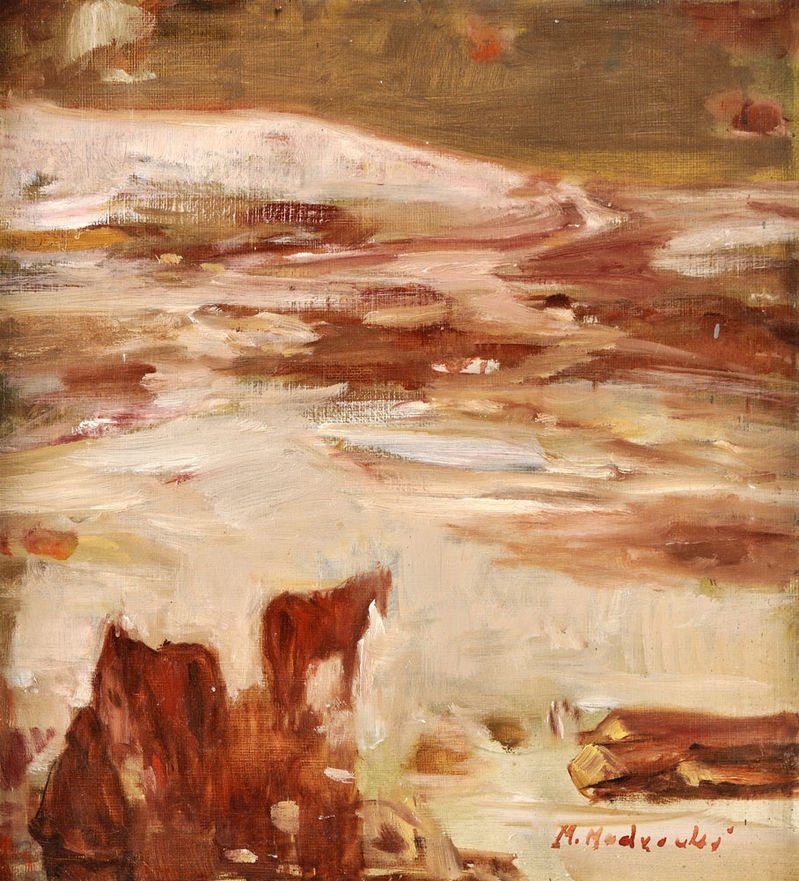 Biografia: Mária Medvecká sa narodila 11. 10. 1914 v Medvedzí na Orave, zomrela 23. 4. 1987 v Bratislave. Po štúdiách na učiteľskej akadémii pôsobila ako učiteľka v rodnom kraji. 1942-45 študovala na Oddelení kreslenia a maľovania SVŠT v Bratislave (prof. Schurmann), 1945-46 na Akadémii výtvarných umení vo Viedni (prof. Andersen), 1946-47 na Akadémii výtvarných umení v Prahe (prof. Želibský). Absolvovala v Bratislave na VŠVU (1948). Bola členkou tvorivej skupiny Život. V roku 1979 sprístupnili galériu jej diela v Tvrdošíne na Orave, ako vysunuté pracovisko Oravskej galérie v Dolnom Kubíne. Samostatne vystavovala v Bratislave (1948, 1979, Galéria hl.mesta Bratislavy). Súbornú výstavu mala v Národnej galérii v Prahe v roku 1979. Z literatúry: Skrak, L.: Mária Medvecká. Bratislava 1977; Kotalík, J., Jankovský, M.: Mária Medvecká - súborné dielo. Katalóg NG Praha, 1979.