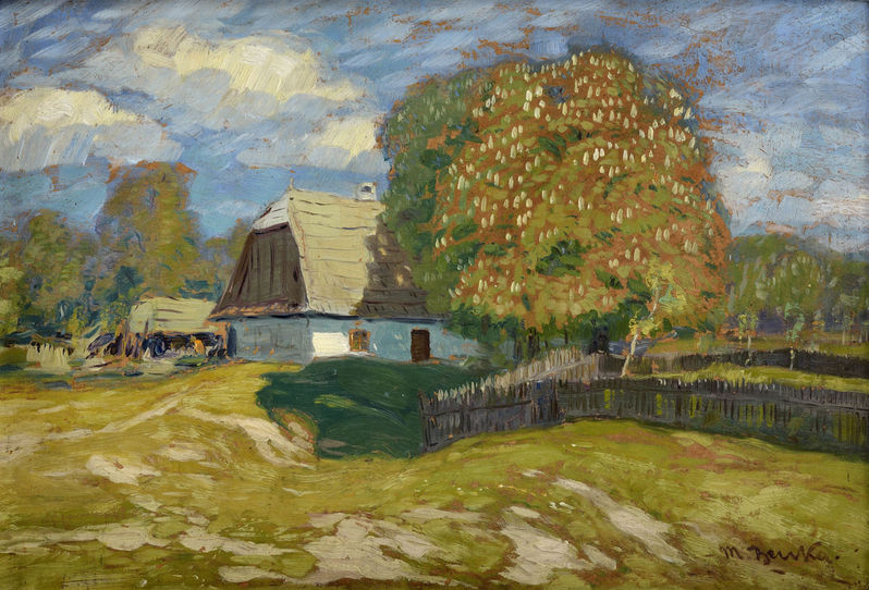 Popis: „MOTÍV Z JUŽNÝCH ČIECH“ je raným dielom Martina Benku. Skoré dielo Martina Benku spelo od významovo neurčitého secesného impresionizmu k znakovo čitateľnejšiemu secesnému symbolizmu. Ten sa ponajprv presadil v už spomínanej sérii interiérov slováckych izieb, sprevádzaných tematicky príbuznými olejovými štúdiami (Slovácka izba, 1914; Svadobná truhlica, 1914; Interiér izby u Tinku, 1914; Pracovňa dr. Alojza Kolíska, 1915; Interiér bytu dr. Kolíska, 1915; Izba z Ratiškovec, 1916, a ďalšie). Benka sa práve v tom čase postupne osamostatnil spod priameho dozoru učiteľa. Prvé Benkove slovácke izby vznikli práve vtedy, keď Kalvodu povolali k armáde. Po jeho demobilizácii sa stal seniorom školského ateliéru, Kalvodovým asistentom. Vyrovnanie vzťahu s učiteľom z podriadenosti a umeleckej závislosti do vzájomne sa rešpektujúcej kolegiality dovŕšil prenájom prvého Benkovho vlastného pražského ateliéru (1914) a napokon odchod do Miloňovíc pri Strakoniciach na veľkorysé pozvanie statkára rytiera Klenku z Vlastimilů (zostal tu až do konca vojny). Šumavské Miloňovice priniesli jasné potvrdenie prelomu: "Miloňovice boli medzníkom, novou etapou v mojom umeleckom vývine. Tu som začal vyjasňovať a upevňovať vlastný umelecký názor". Najmä veľkoformátové maľby z rokov 1915--1919 vynikajú slohovou vyhranenosťou a symbolickou nasýtenosťou a v tomto majú len málo čo spoločného s kalvodovskými náladovými, obsahovo vyprahnutými krajinárskymi štúdiami.