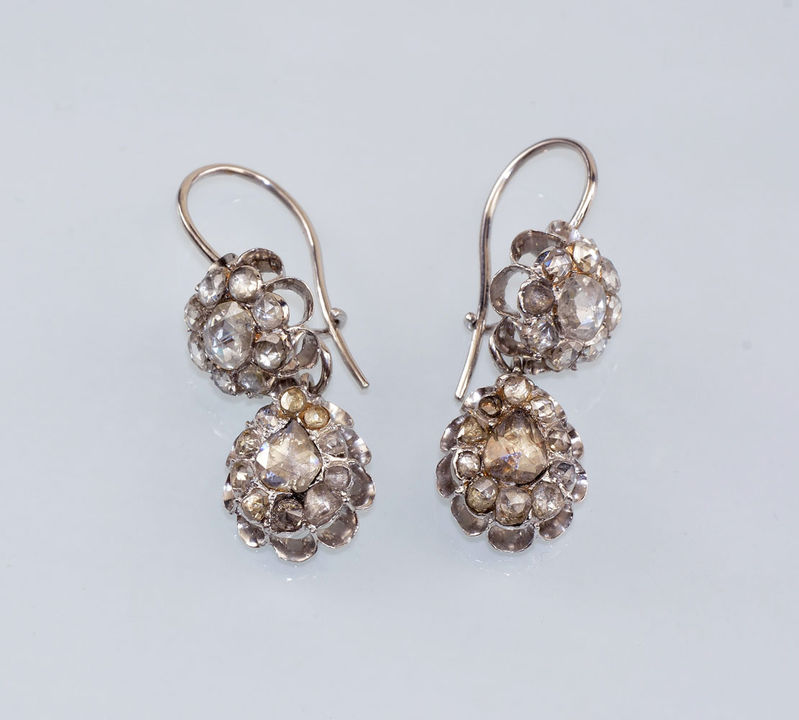 Technika: 14 k biele zlato, diamanty 40 ks spolu cca 2,0 ct, starý brús, stredná kvalita, stredná farba. Váha 7,7 g