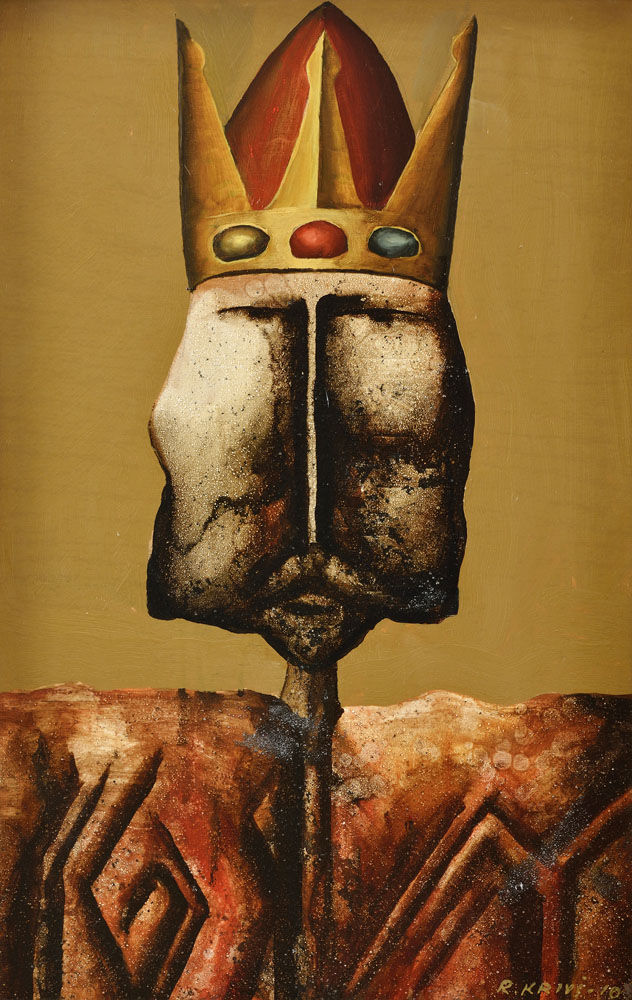 Popis: „Svätopluk“ je dielom neskorej tvorby Rudolfa Krivoša. Súčasné obchodné renomé Rudolfa Krivoša vychádza z faktu, že bol jedným z profilujúcich zakladateľov Skupiny Mikuláša Galandu (1957). Toto výtvarné zoskupenie (okrem Krivoša najmä Laluha, Kompánek, Rudavský, Paštéka a niektorí ďalší) má historickú zásluhu na obnovení spretrhanej kontinuity moderného výtvarného výrazu v našom výtvarnom umení. Kým Krivošovi druhovia nachádzali oporu v tvorivom odkaze zakladateľov našej moderny (Fulla a Galanda) on sám sa obrátil k poučeniu západoeurópskou novou figuráciou. V 60. rokoch diela Krivoša reprezentovali naše maliarstvo na najvýznanejších svetových prehliadkach. Narodil sa 16. 11. 1933 v Tisovci. 1951-56 študoval na Vysokej škole výtvarných umení v Bratislave (prof. Mudroch). Z literatúry: Matuštík, R.: Moderné slovenské maliarstvo 1945-63. Bratislava 1965, Kol.: 60. roky vo výtvarnom umení. Katalóg SNG, Bratislava 1995. Kubíková, K.: Rudolf Krivoš. Katalóg SNG, Bratislava 1997.
