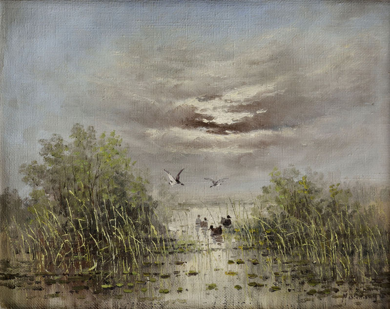 Pastierka husí na pustePri napájadleChalupy pri vodeHusiarkaHorské jazeroZátišie s knihamiMočiar s bocianmiChata pod horamiZimná dedinská usadlosťDva psiRybník v nociHorská bystrinaUsadlosť v horáchKačice v močiariRybár na člnkuBocianDedinský domHusiarka pri dedineKartárka