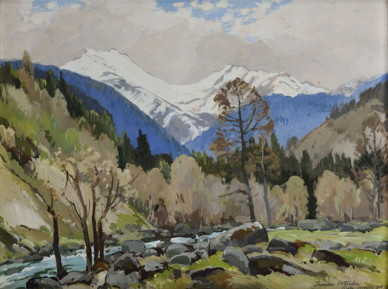 730,27,- € Jeseň pri potoku. 1927. Tempera na plátne. 48 x 68 cm. (6. letná aukcia, 26. 5. 1998)