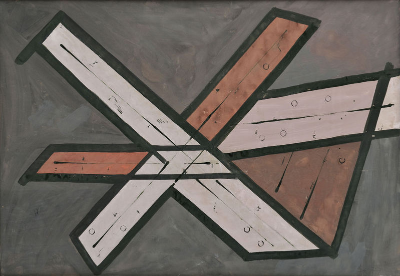 € 2 800 Križovatka. 1966. Kombinácia techník na sololite. 86 x 86 cm. (112. jesenná aukcia výtvarných diel , 24.09.2013)