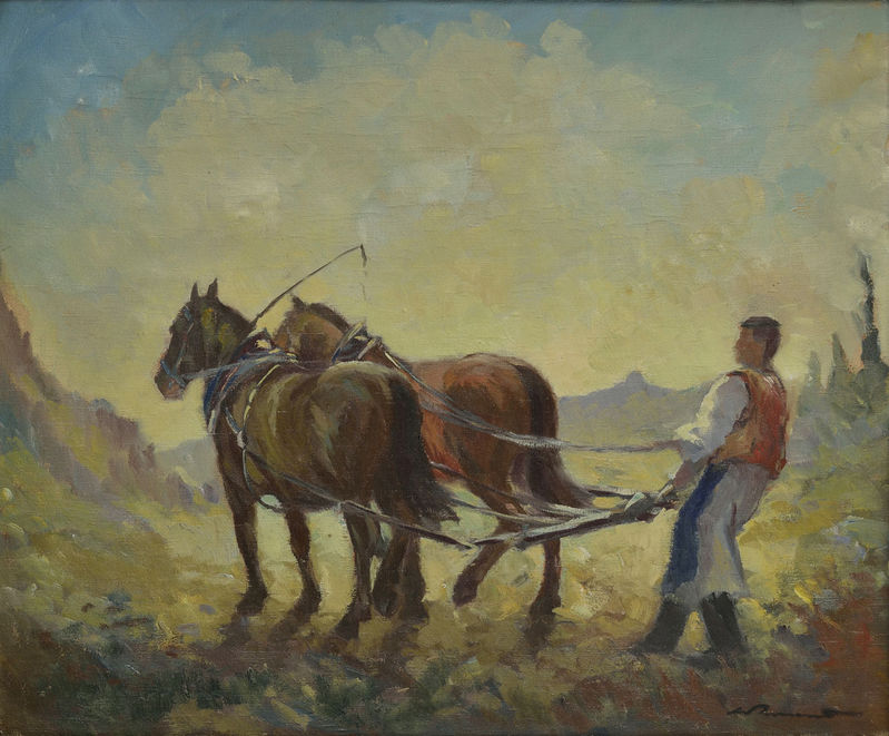 € 3 651,33 Drevorubači v Tatrách. Okolo 1935. Olej na plátne. 147 x 156 cm. (58. letná aukcia, 14. 06. 2005).