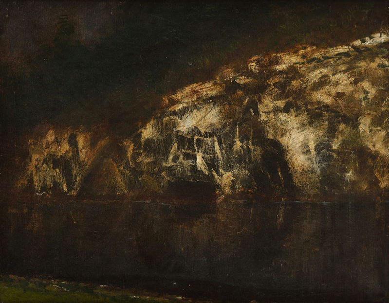 € 85 000 Hmlistá lesná krajina pri rieke. Okolo 1880. Olej, plátno. 70 x 120 cm. Neznačené. (104. večerná aukcia, 29.05.2012)