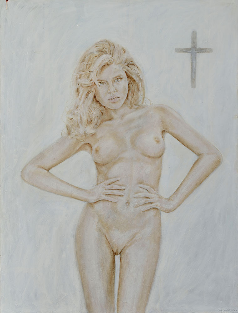 Popis: „Hriech“ je typickým príkladom maliarskej filozofie Igora Ondruša. Tá je postavená na celkom odkrytom, pre maliara (možno) i jeho diváka (určite) stresujúcom, kontraste banálno-absurdných sujetov a prekvapivo závažného, často moralizujúceho posolstva, poukazujúceho na skrytú perverzitu, obscénnosť súčasnej doby. V jeho obrazoch takto dominuje ako trvalo prítomný, významovo iritujúci rozpon medzi osobnou dezilúziou a úsilím o priamočiare, teda pravdivé videnie vecí života. Jeho maľba sa tematizuje v explicitnej telesnosti a jej niekedy humorných či zľahka ironizujúcich, ale väčšinou tvrdo morbídnych, len na prvý pohľad nepravdepodobných extravagancií, persifláží, sexuálnych, genitálnych a iných deviácií. A to všetko v mene úsilia o popis desivých skutočností, skrývajúcich sa pod lesklým povrchom ideológie spoločnosti konzumu: vratkej harmónie životného štýlu „up to date“, s jej kultom nezáväznej erotiky, bezduchým kánonom dokonalosti fyzickej podoby človeka. Netradične farebný a „Šit Hapens“ je Ondrušovým kritickým príspevkom k diskusii o stave súčasnej slovenskej maľby. Hoci nebýva zvykom, využívať aukčnú pôdu na osobné protesty, rozhodli sme sa autorovi poskytnúť priestor aj na takýto „angažovaný“ apel... Igor Ondruš sa narodil sa 24. 5. 1972 v Bratislave. 1990-94 študoval na Fakulte architektúry STU v Bratislave. 1997-2003 študoval maľbu v ateliéri Vladimíra Popoviča a grafiku u Róberta Jančoviča.