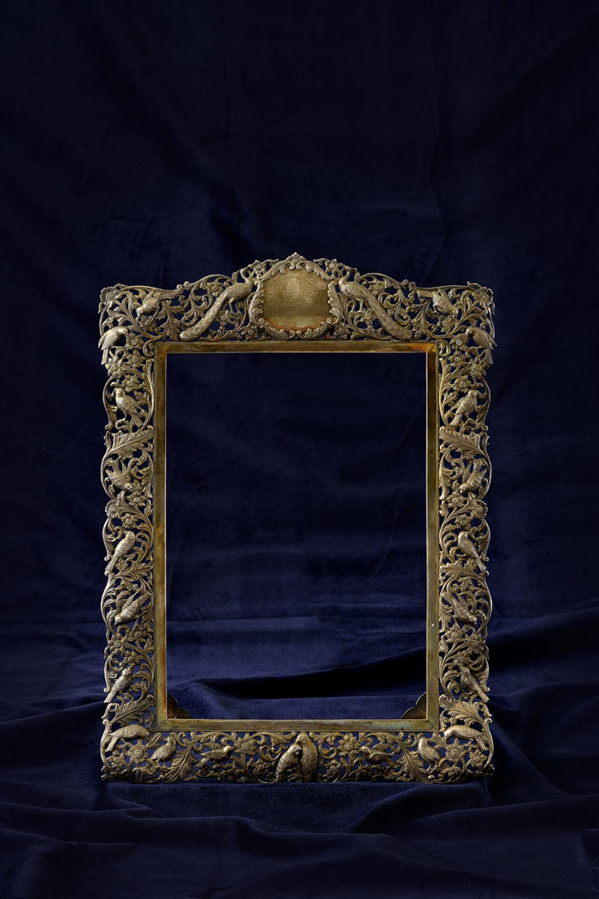 Popis: Ručná práca, odlievané a ručne tepané motívy vtákov a kvetov