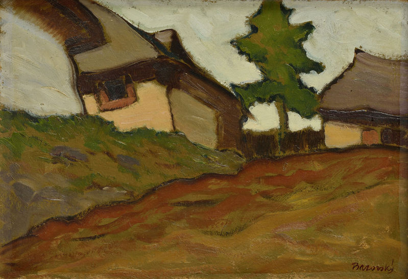 je zberateľsky vzácnym príkladom diela Miloša A. Bazovského, pochádzajúceho zo zlomového obdobia tvorby rokov 1929-32. Obrazy tejto periódy umelcových experimentov sa totiž na trhu vyskytujú len ojedinele. Nikdy otvorene nevyhlásenú a nakoniec neveľmi dôslednú protibenkovskú revoltu vtedy azda najvýraznejšie zosobňovali dvaja dočasní umeleckí súputníci -- Miloš Alexander Bazovský a Janko Alexy. Vo vzájomnej spolupráci sa im podarilo sformulovať protichodný postoj k Benkovej heroizačnej koncepcii. Zostávali na pôde národného mýtu, avšak s jednou dôležitou výhradou. Ich úsilie -- oproti Benkovi -- smerovalo k programovému abstrahovaniu, prenášaniu častí ľudovej "reality" do špekulatívneho obrazu národa, komponovaného podľa výtvarných a nie literárnych pravidiel. Na druhej strane im však stále, i v tých najradikálnejších experimentoch, išlo o dva, pre nich rovnako dôležité ciele: stvoriť obraz ako relatívne svojprávnu skutočnosť s vlastnými vnútornými zákonitosťami a zároveň, vyjaviť predstavu "slovenskosti" v maliarsky prečistenej podobe. Bazovského diagonalita, nesymetrická rytmika detailu a celku signalizuje rozjatrenú dualitu človeka a sveta (Február, 1930; V čičmianskom poli, 1930; Po daždi, 1930; Na lístie, 1931; Žena s krčahom, 1931; Chudobná paša, 1932; Lazníci, 1932; Hospodár, 1932). Predvádza sa tu celkom neromantický, vnútorný rozpor medzi človekom a jeho krajinou. Defolklorizácia teda neznamenala pre Bazovského len odmietnutie národopisnej popisnosti. Je to v istom zmysle spochybnenie celej romantickej tradície, ktorú v našom modernom maliarstve znovuoživil Martin Benka. Tradície nachádzajúcej jeden z archetypov slovenskosti v ideálnom, mierovom spolužití slovenského človeka s jeho prostredím, prácou a kultúrou. Protirečivosť a dramatickosť autentického, vôbec nie ideálneho vzťahu "zľudšteného" sedliaka k práci, ktorá mu už nie je benkovským vykúpením, prekonaním a vyrovnaním sa s prírodou, ale stáva sa iba opakovaným, každodenným hrdlačením, túto rozporupnú významovú atmosféru Bazovského diel ešte zhutňuje.