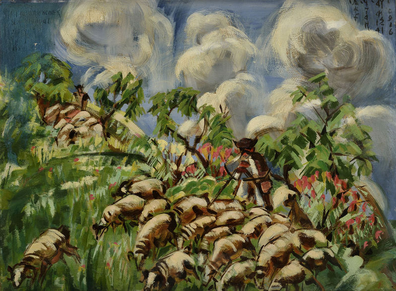 Súkromná zbierka na Slovensku. Na zadnej strane popis diela a oceňovacia nálepka Nemzeti Szalónu v Budapešti.