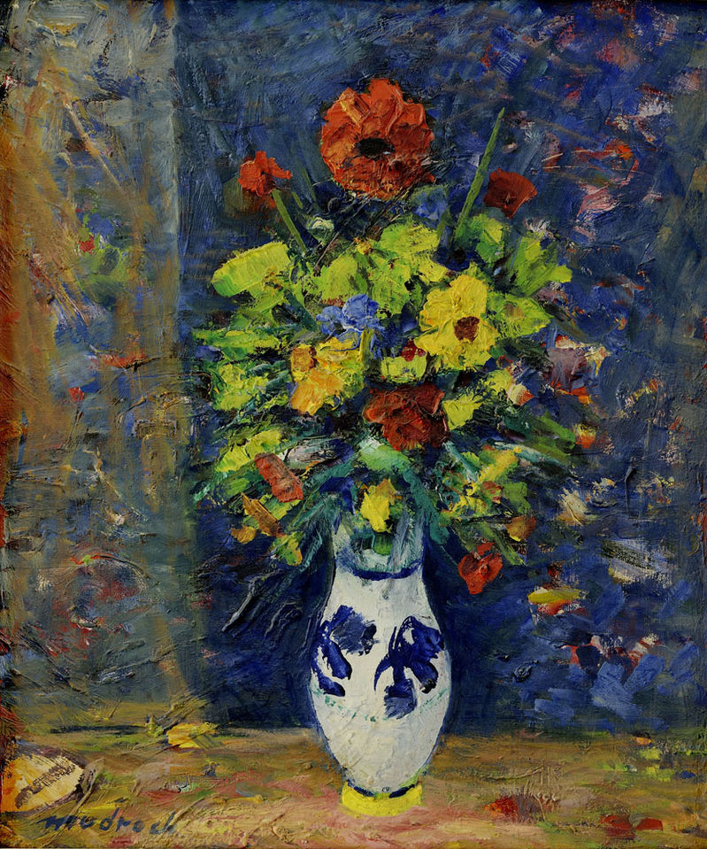 € 21 000 Kytica v modranskej váze. Okolo 1950-55. Olej na kartóne. 52 x 36 cm. (101. zimná aukcia výtvarných diel a starožitností, 06.12.2011)