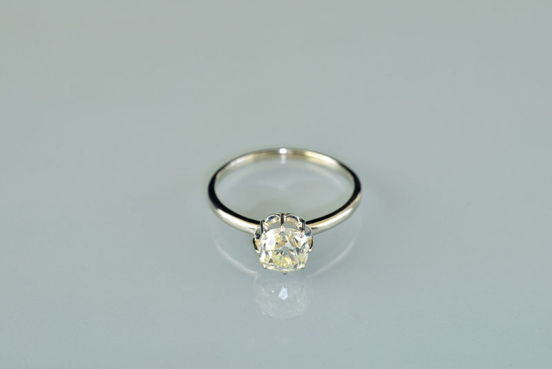 Technika: 18 k biele zlato. Briliant solitér cca 2,6 ct, čistota SI2, farba J.