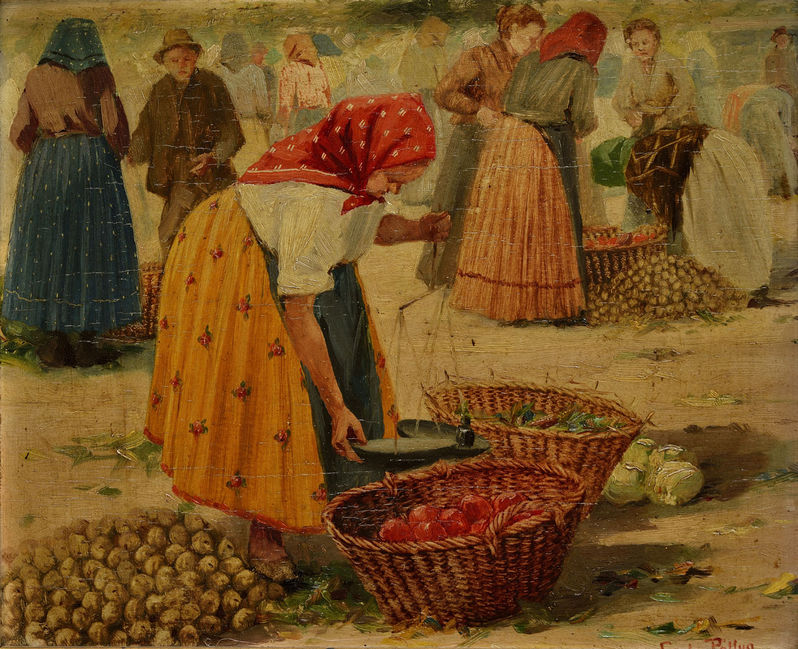 € 365,13,- Na trhu. Okolo 1910. Tempera na kartóne. 24 x 18 cm. (37. jarná aukcia, 18. 3. 2003)
