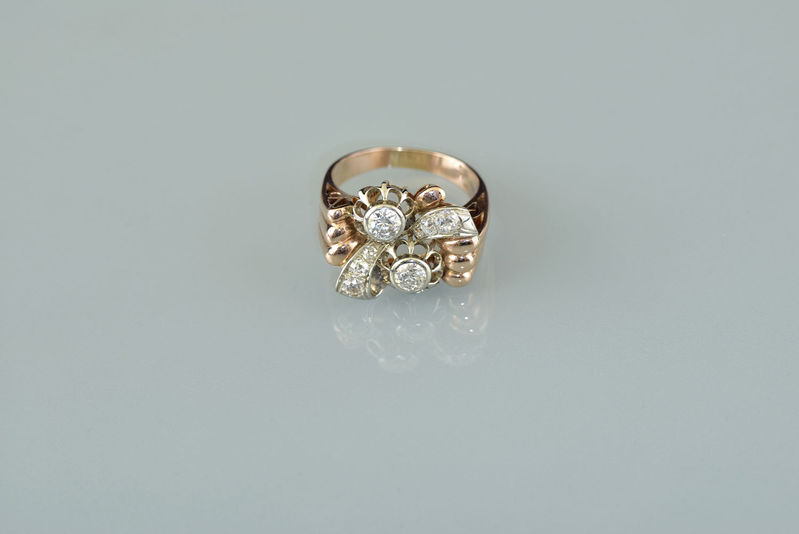Technika: 14 k žlté a biele zlato. Váha: 8,8 g,