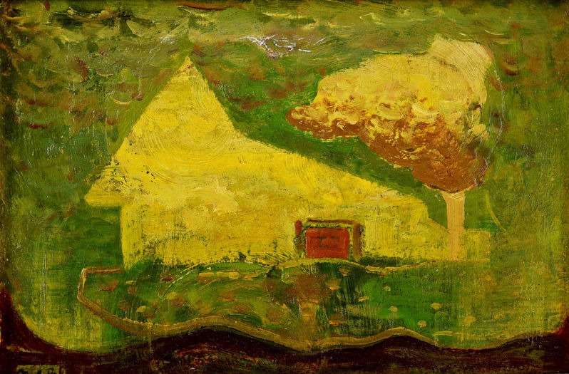 patrí na začiatok záverečného vyvrcholenia tvorby Miloša A. Bazovského v rokoch 1952- 57. Vtedy, v úplnom osamotení, ako jeden z mála účastníkov heroických dôb medzivojnovej moderny, nekompromisne udržiaval jej kontinuitu. A stvoril diela, ktoré patria k vrcholom nielen jeho umenia, ale znamenajú i nóvum v rámcoch nášho povojnového výtvarného diania vôbec: „… zhruba od roku 1952… začína klásť väčšmi ako predtým dôraz na výtvarné vyzdvihovanie, ozvláštňovanie vertikálnych zložiek obrazovej skladby. Výraznejšie artikuluje tvar, siluetu i plochu maľovaných predmetov, znásobuje aj účinnosť farebného podania…. Horúcu sústavu červenohnedých, zlatistookrových a červených … vystrieda iná farebná zostava, najmä výbuchy zelených a žltých. Namiesto maľby „alla prima“… začína uprednostňovať… maľbu na pomaľovaných materiáloch. Pritom veľmi uvážene a s rafinovaným vkusom využíva fragmenty čiastočne pomaľovaných pozadí alebo aj celých svojich starších obrazov na vytvorenie nových farebných i štrukturálnych efektov, na prekvapujúce tvarové i farebné kombinácie“. Aj predtým z času na čas využívaný postup sebacitácií tak nachádza v záverečnom fortissime Bazovského umenia ústredné postavenie. Je prejavom dosiahnutého maliarskeho poznania, výtvarnej suverenity, ale aj čímsi viac: obracanie sa k „sebe samému“,obmeny a kombinácie predchádzajúcich riešení sú tou najschodnejšou a najprirodzenejšou cestou zvnútorňovania obrazu, zbaveného raz a navždy nadbytočných literárnych konotácií. Tak Bazovský (v príznačných technických prechodoch medzi gvašom a olejom) obmieňa vlastný erbový motív dedinského kostolíka (Krajina so sýpkou a kostolíkom. 1952, Krajina s kostolíkom, sýpkou a člnom, 1952 – 1953), či rozmanité konfigurácie fragmentov dedinskej architektúry Oravy - stodoly, senníky, domy, chalupy, samoty (Jesenný motív z Oravy, okolo 1952, Večer, 1953, Oravská dedina, okolo 1953, Samota - Gazdovstvo v zelenom, okolo 1952, Oravské humná, 1952 – 1953, Drevená dedinka, 1953). Metóda voľného, od triviálnej reality nezávislého narábanie s „hotovými“ tvarovými, vecnými i figurálnymi sekvenciami, ich permutačné obmeňovanie však zároveň vyvolá na svet i celkom nový výraz: vytvára sa tak priestor pre „vizionárske halucinačné obrazy a kombinácie, plné výtvarnej poézie a emotívnej sugescie…“ pre celkom nové výtvarné a myšlienkové postupy, ktoré sám maliar nazýva „polosurrealizmom...“.