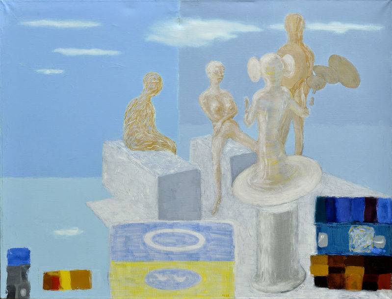 € 9 200,- Modelovanie. 2005. Olej, kombinácia techník na plátne. 122 x 150 cm. (100. jubilejná večerná aukcia, 15.11.2011)