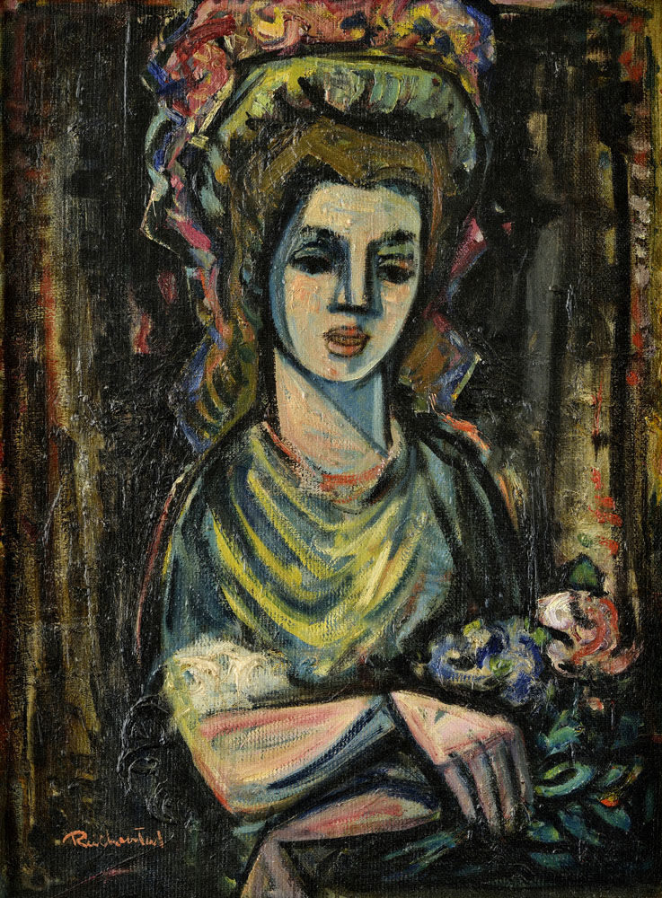 € 5 000,- Portrét manželky. Okolo 1925. Olej na kartóne. 60 x 47 cm. (92. letná aukcia, 8. 6. 2010)