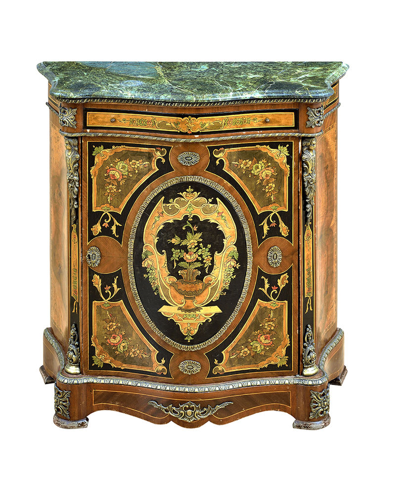Technika: Drevo, intarzia, mramorová doska