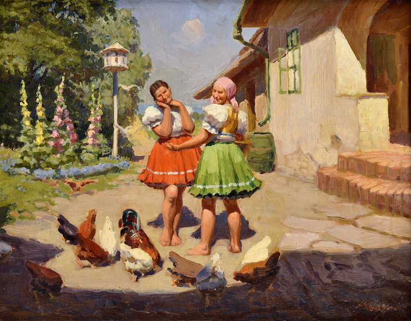 € 18 000 Na sedliackom dvore. Okolo 1940. Olej na plátne. 40 x 50 cm.. (110. večerná aukcia , 23.04.2013)