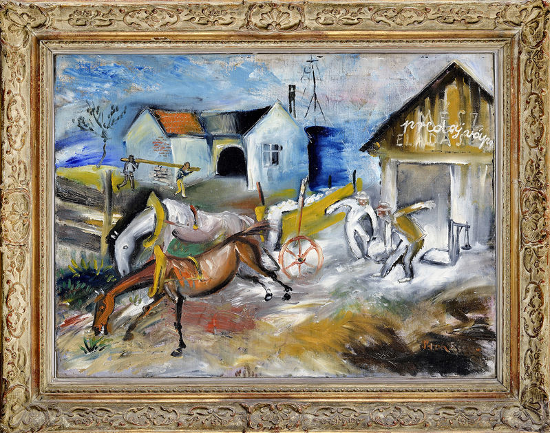 € 1 327 Na dedine pri Šamoríne. Okolo 1935. Tempera na plátne. 30,5 x 45 cm. (18. zimná aukcia, 2. 12. 1999)