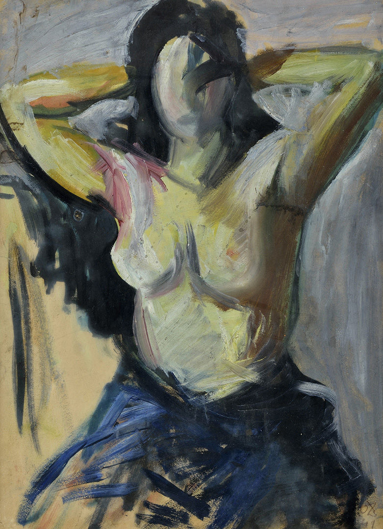 € 597,49,- € Sediaci akt. Okolo 1965. Pastel na papieri. 57 x 40 cm. (4. zimná aukcia, 16. 12. 1997)