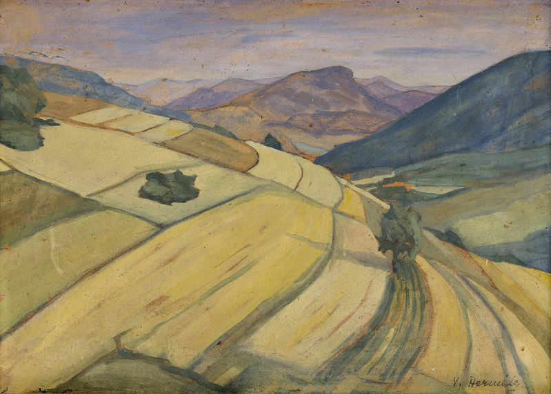 Biografia: Viktor Hermély sa narodil 10.8. 1891 v Kremnici, zomrel 7. 1. 1973. V rokoch 1906-9 študoval drobnú plastiku na Krajinskej umelecko-priemyslovej škole (prof. Anton Lóranfi), neskôr v 1910-15 na Vysokej výtvarnej škole v Budapešti. Študijné pobyty v Drážďanoch, Mníchove, Viedni a Benátkach. Ťažiskom tvorby V. Hermélyho bola kresba a grafika v technike leptu, ktorú v záverečnom období spájal s kriedou do osobitnej kombinovanej techniky. Grafiku si osvojil vlastnou praxou. Vyznačoval sa ostrou a presnou kresbou. Zaujímal sa o problematiku obrazového svetla. Bol významným spolutvorcom charakteru slovenskej medzivojnovej grafiky. Od roku 1921 bol členom banskobystrickej Jednoty výtvarných umelcov Slovenska, neskôr Spolku slovenských umelcov.