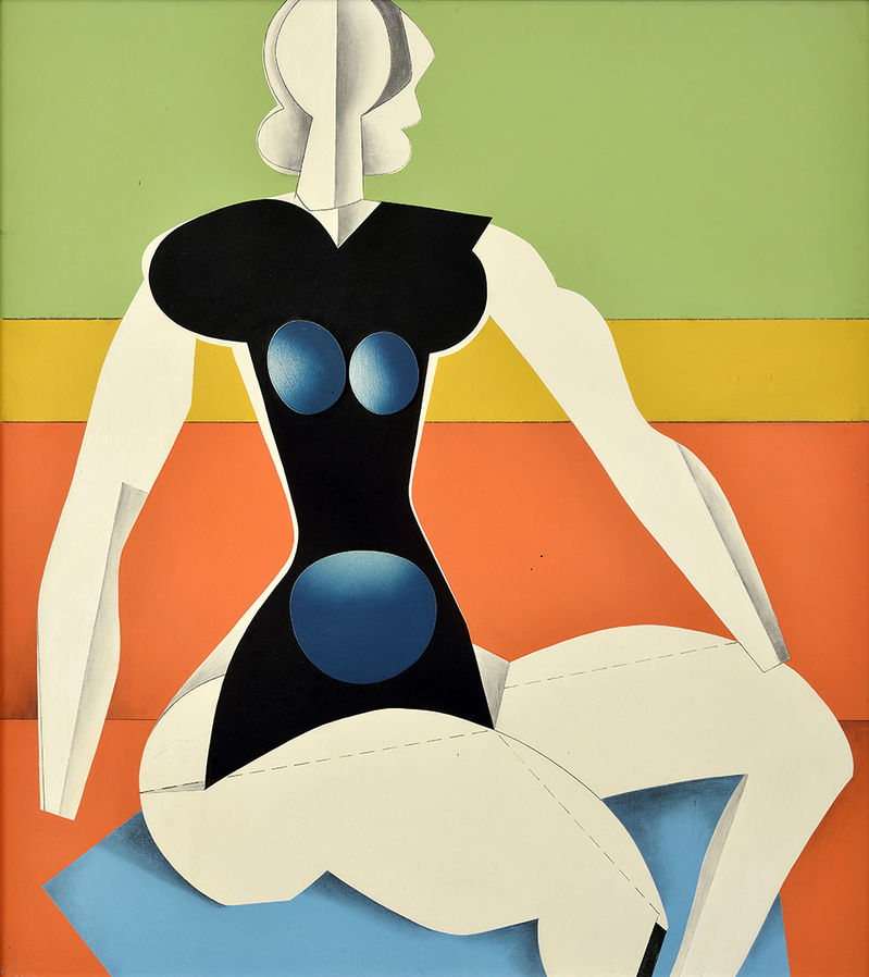 € 5 000,- Akt. 1971. Akvarel, farebné ceruzy, uhoľ, koláž na papieri. 49 x 49 cm. (86. letná aukcia, 9. 6. 2009)