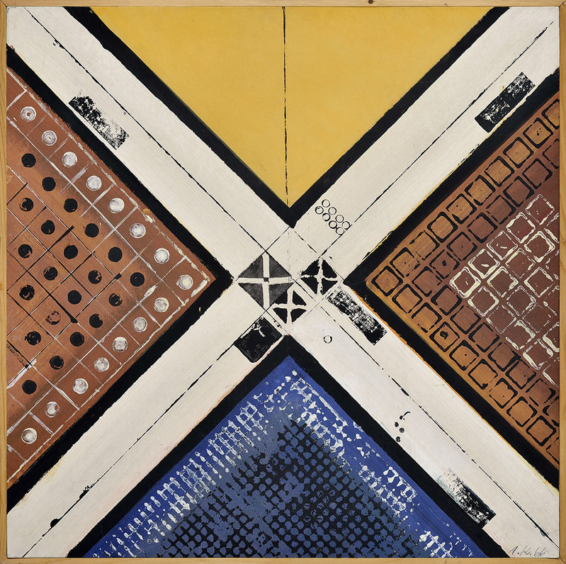 je prácou Alojza Klima zo šesťdesiatych rokov. Diela doyena slovenského konštruktivizmu, patria do zlatého fondu nášho umenia po roku 1945, sú reprezentatívne zastúpené v štátnych zbierkach a stávajú sa spravidla súčasťou retrospektív nášho umenia druhej polovice 20. storočia. Od raných šesťdesiatych rokov sledoval Alojz Klimo vyhranený umelecký program, čerpajúci z odkazov konštruktivistických avantgárd, pričom však uchovával neopakovateľné čaro osobného maliarskeho zaujatia, konfrontovaného z antiseptickým svetom jeho geometricky čistých kompozícií. Podľa Evy Trojanovej Alojz Klimo „… v niekoľkých erbových témach – štvorce, okná, križovatky – rieši základné plastické vzťahy výstavby obrazového priestoru. Špecifikom umelcovej práce je skĺbenie geometrických konštrukčných princípov s intenzívnym maliarskym cítením a prácou s farebnou hmotou. Slobodné narábanie s jazykom geometrie, priznanie maliarskych hodnôt farbe, schopnosť individuálneho formovania všeobecného sú základné prínosy, o ktoré Klimo obohatil súdobé výtvarné dianie…“. Spočiatku sa objavujú štrukturálne prvky, reálne štruktúry privlastnených materiálov (lepenka) a rastre odtláčaných štruktúr. Napriek strohému geometrickému jazyku dominuje Klimovej maľbe autorské gesto - záznam ťahu štetca sa prejavuje v "nedokonalosti" línií a plôch. Expresívne kvality maľby tak zostávajú trvalo prítomné, len zdanlivo prekryté racionálnou skladbou geometrických útvarov. V Klimovej maľbe tak zostáva napätie medzi iracionálnym, náhodným a odosobneným geometrickým. Okrem línie zohráva významnú rolu farba. Farebné plochy sú málokedy monochrómne, zriedkavo dodržiavajú hranice vytýčené líniami - buď ich presahujú, alebo sa im vyhýbajú - aj tu sa znova stretávame s nedisciplinovanosťou, neusporiadanosťou, špecifickou pre jeho podobu geometrickej abstrakcie.