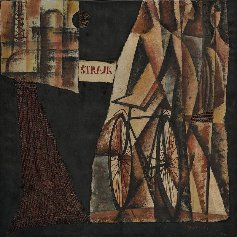 je zberateľsky vzácne rané dielo Rudolfa Krivoša. Podľa Kataríny Bajcurovej „...v raných portrétoch a autoportrétoch z konca 50. a začiatku 60. rokov radikálnou zjednodušujúcou štylizáciou inšpirovanou kubistickou tvarovou dikciou prehodnocoval dovtedajšie mechanické prepisy optickej skutočnosti. Neskôr konštruktívne cítené tvaroslovie a sklon k výrazovej skratke prehodnotil expresívnymi a novofiguratívnymi prístupmi, sústredil sa na prácu s netradičnými materiálmi a technologickými postupmi. Vo figurálnej tvorbe sa podobne ako A. Barčík a M. Paštéka venoval „rúcaniu modiel“, pričom svoje archetypálne tvary umiestňoval do nečakaných, často konfliktných situácií, ktoré vyplývali z protirečivej povahy súdobej civilizácie, antropologických a existenciálnych problémov človeka...“. Súčasné obchodné renomé Rudolfa Krivoša vychádza z faktu, že bol jedným z profilujúcich zakladateľov Skupiny Mikuláša Galandu (1957). Toto výtvarné zoskupenie (okrem Krivoša najmä Laluha, Kompánek, Rudavský, Paštéka a niektorí ďalší) má historickú zásluhu na obnovení spretrhanej kontinuity moderného výtvarného výrazu v našom výtvarnom umení. Kým Krivošovi druhovia nachádzali oporu v tvorivom odkaze zakladateľov našej moderny (Fulla a Galanda) on sám sa obrátil k poučeniu západoeurópskou novou figuráciou.