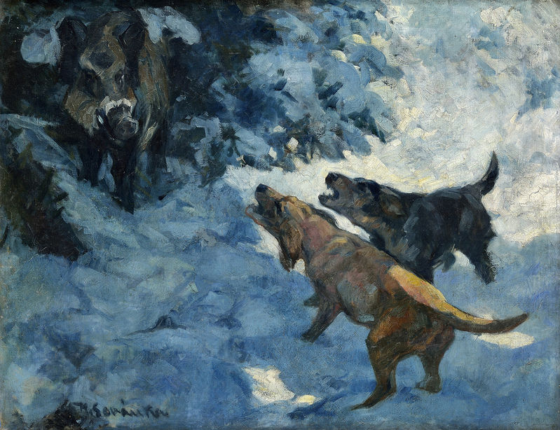 € 5 700,- Diviak a psi. Okolo 1940. Olej na plátne. 62 x 79 cm. (119. večerná aukcia , 11.11.2014)
