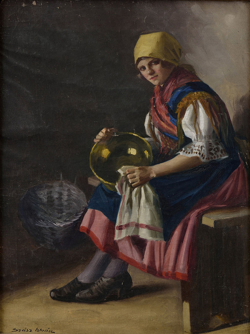 € 298,75,- Dievča s tamburínou. Okolo 1920. Olej na plátne. 58 x 48 cm. (72. letná aukcia, 12. 6. 2007)