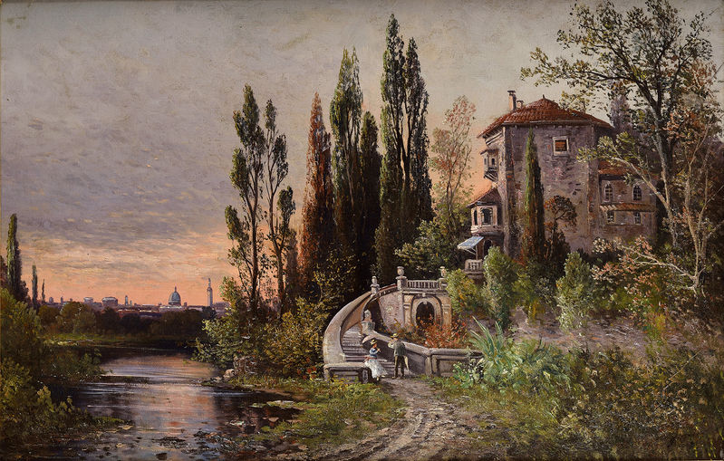 € 1 400 ,- Nedeľná prechádzka krajinou. Olej na plátne. 72 x 97 cm. Genova 2010