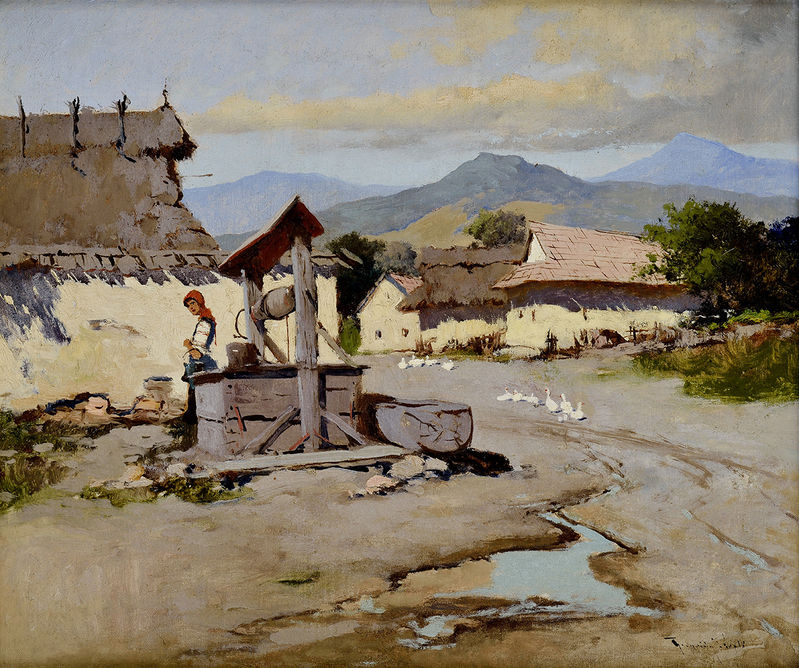 € 3 400,- Pastierky na potoku. Okolo 1925. Olej na plátne. 60 x 80 cm. (121. jarná aukcia 17.03.2015)