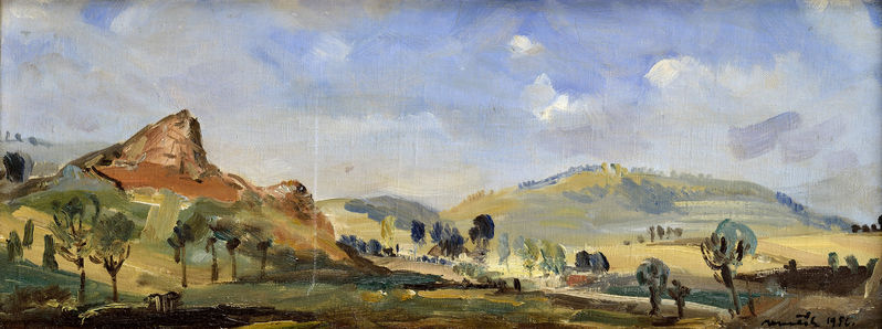 € 1 400,- Polia pri Ratkovom. 1957. Olej na plátne. 68 x 120 cm. (114. zimná aukcia, 03.12.2013)