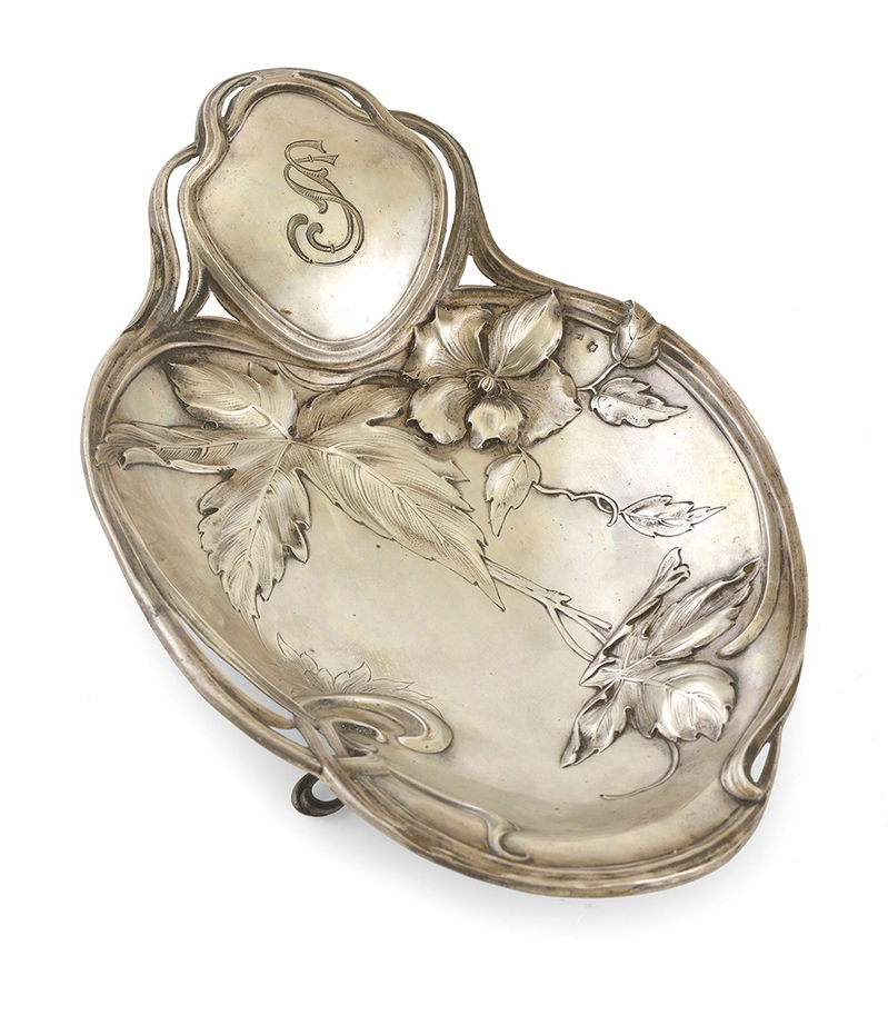 Technika: Striebro 800/1000, lisovaný a ručne tepaný vzor popínavého klematisu