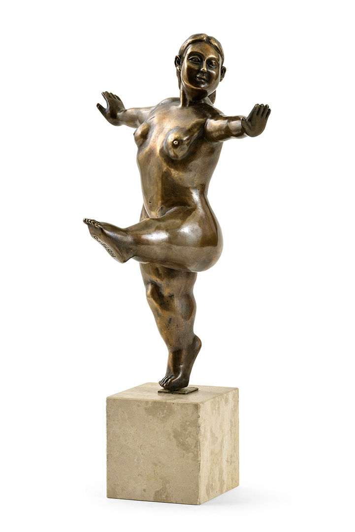 € 600 Tancujúca žena. Neskoršia edícia. Bronz, mramorový podstavec. Výška 38 cm. (89. zimná aukcia, 1. 12. 2009)