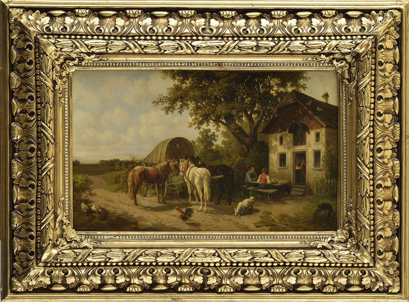 € 2,000,- Jazdecká skupina. Olej na plátne. 25,5 x 47,5 cm. Viedeň 2004