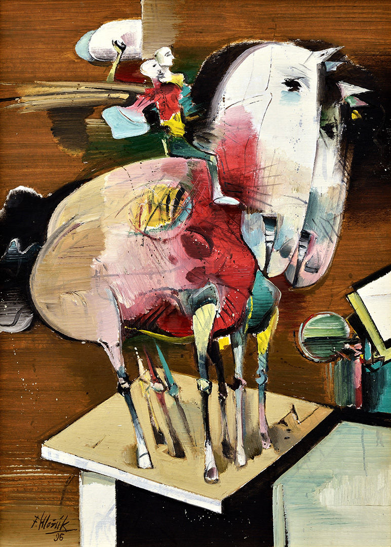 Biografia: Ferdinand Hložník sa narodil 18. 11. 1921 vo Svederníku pri Žiline, zomrel 27. februára 2006 v Bratislave. 1942–46 študoval na Oddelení kreslenia a maľovania SVŠT v Bratislave (prof. Mallý, Kostka, Mudroch). Od 1945 pôsobil v Skupine 29. Augusta. 1967 mu bola udelená Cena Cypriána Majerníka. Vystavoval v Sao Paule (1965), Ríme a Neapole, Plzni, Bratislave a Berlíne.