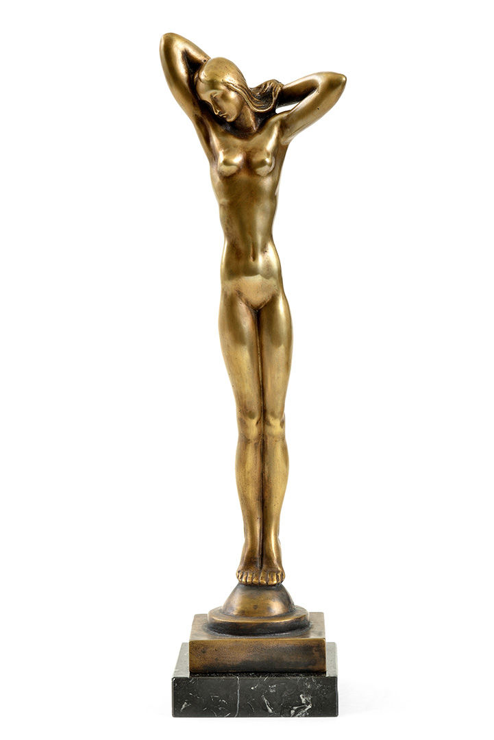 € 2 755 Stojaci ženský akt. 1936. Bronz, mramorový podstavec, v. 43 cm. (80. letná aukcia, 10. 6. 2008)