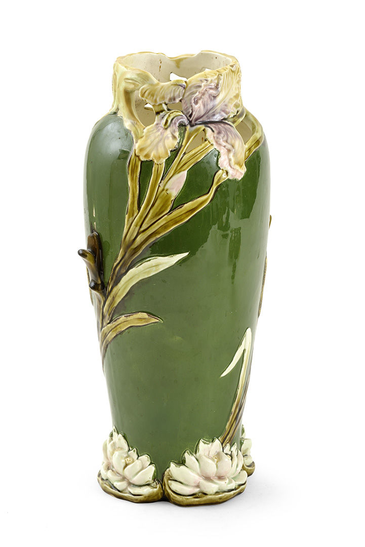 Technika: Glazovaná keramika s reliéfnymi motívmi lekna