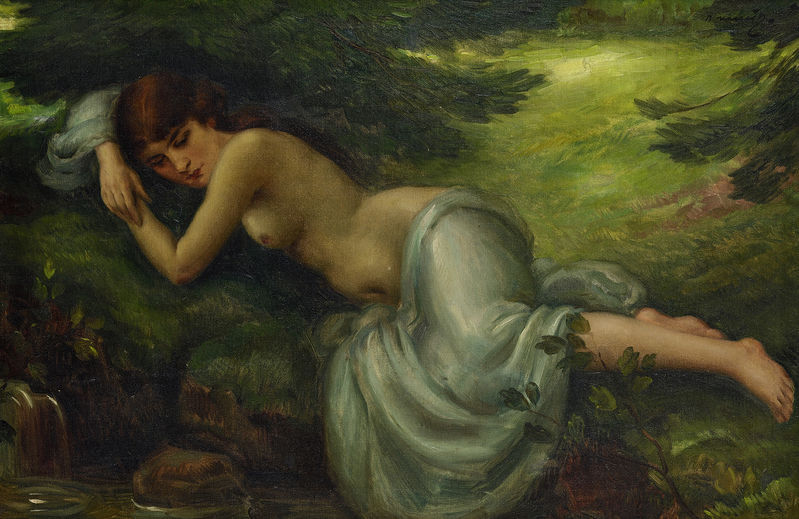 € 3,000,- Ležiaci ženský akt. Olej na plátne. 67 x 90,5 cm. Viedeň 2014