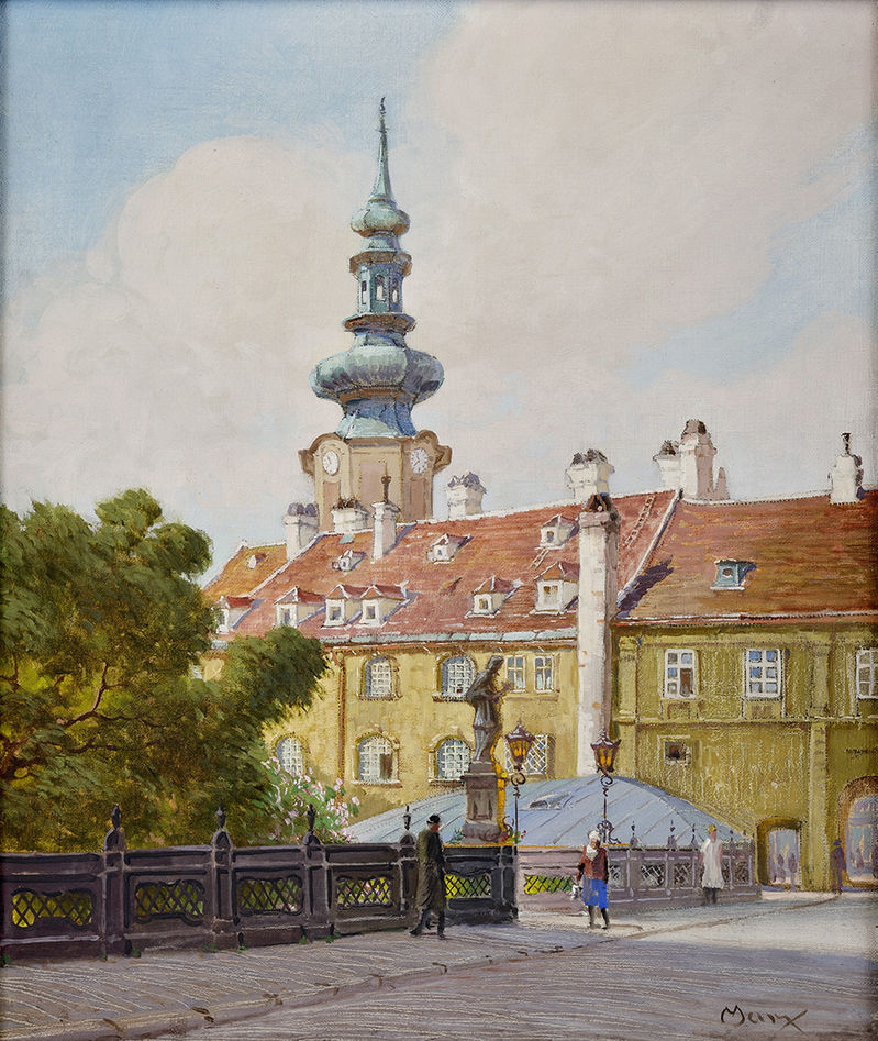 Biografia: Vojtech (Béla) Marx bol maliar a reštaurátor. Narodil sa 23.8.1885 v Bratislave, zomrel 1963 vo Viedni. Odchovanec prof. Eierera na vyššom gymnáziu v Bratislave. Po skončení strednej školy sa vyučil divadelnému maliarstvu u G. Wintersteinera v Bratislave, potom vo Viedni u prof. Streblowa a na Škole pre učiteľov kreslenia v Budapešti (prof. Zemplényi). Študoval dejiny umenia, vo Viedni reštaurátorstvo a konzervovanie u prof. Schäffera. Dva roky pôsobil ako reštaurátor v Berlíne, Kolíne nad Rýnom, Hamburgu, v Čechách a na Morave. V rokoch 1919-1945 pôsobil v Bratislave, potom až do smrti vo Viedni. Podnikol študijné cesty do Talianska a Egypta. Maľoval krajinu, architektúru a staré zákutia Bratislavy. V zbierkach Galérie mesta Bratislavy je jeho 46 olejomalieb, dokumentujúcich architektúru starej Bratislavy.