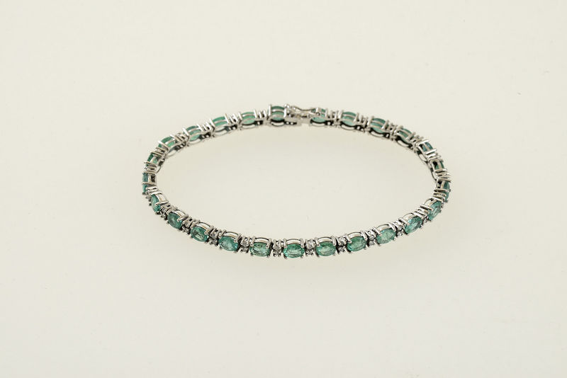 Technika: Biele zlato, 50 ks diamatových šplitrov cca 0,55 ct,, 25 ks smaragdov cca 9,0 ct