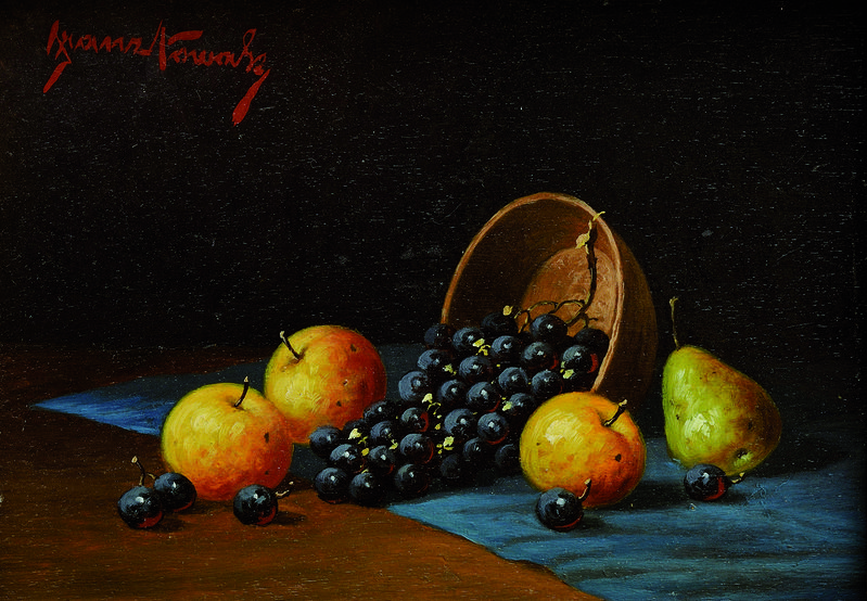 € 1 261 Zátišie s ovocím a džbánom. Nedat. Olej na dreve. 12 x 9 cm. (25. jarná aukcia, 20. 3. 2001)