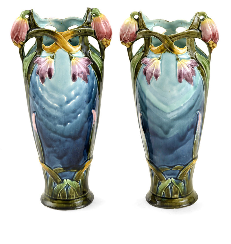 Technika: Glazovaná keramika s reliéfnym motívom jarných kvetov