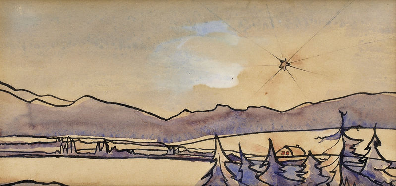 € 658,- Osamelý domček. 1949. Akvarel, gvaš na papieri. 1949. Praha 2002