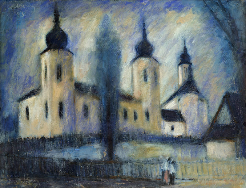 € 18 000,- Kaštiel v Liptovskom sv. Jáne. 1943. Olej na kartóne. 68 x 97 cm. (116. večerná aukcia, 08.04.2014)